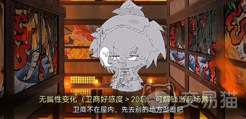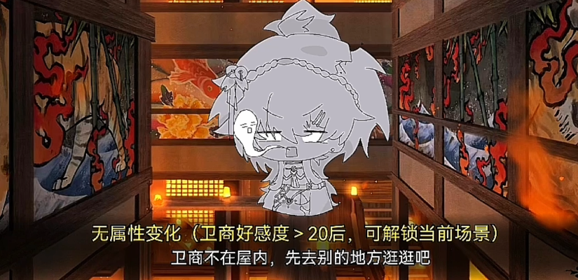 角色形象上,卫商拥有白皙肤色与标志性紫发,外显气质沉稳儒雅,思维缜密且洞察力极强。但随着剧情推进,其深层性格逐渐显露——对女主抱有强烈情感依附与排他性占有欲,属于典型高张力“病娇”型设定。因日常共事关系紧密,他是所有角色中与女主互动频率最高、信息掌握最全面的一位。因此,前期优先提升与卫商的好感度至20以上,是解锁外出探索环节中专属地点剧情的必要条件。