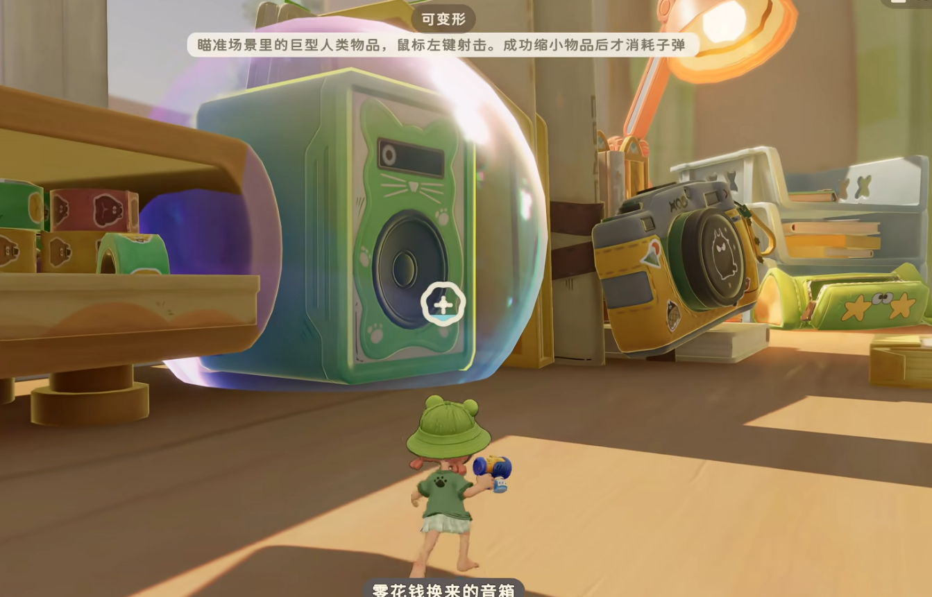 为提升探索效率,建议将变形枪与背包中的小弹弓等辅助道具协同使用。小弹弓可用于触发高处或隐蔽位置的可缩物品,拓展采集边界;而变形枪则专注完成最终收纳,二者配合形成闭环动线。这种组合策略在书桌、窗台、书架等典型微观场景中尤为高效,大幅降低重复往返成本。