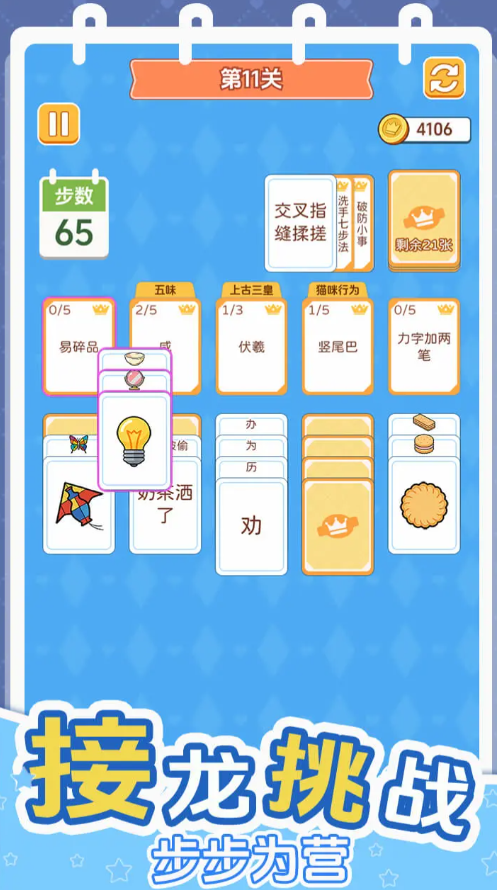 游戏核心玩法聚焦于纸牌式词汇归纳与规则化接龙,入门门槛低,但高阶关卡对语义联想、类比推理与短时记忆提出明确要求。持续挑战有助于提升反应精度与信息整合能力,避免浅层重复带来的倦怠感。