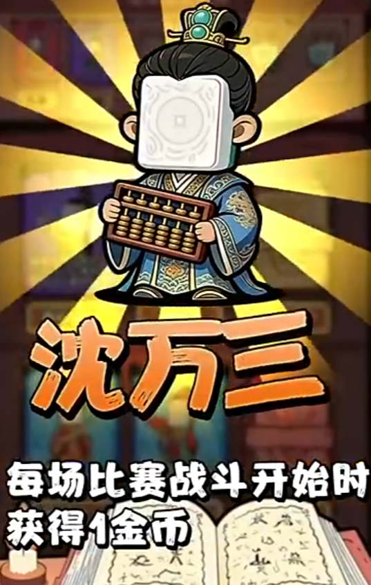 角色系统深度绑定中式民俗符号,如“关二爷”“沈万三”等历史传说人物被赋予差异化技能。例如,“沈万三”可在每局开局自动获得1枚金币,辅助资源积累;而对局过程中还将随机遭遇“心魔”干扰或Boss级挑战事件,大幅提升进程不可预测性与叙事沉浸感。