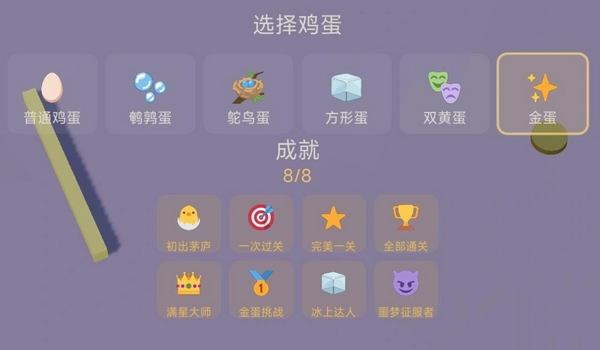 成就体系采用双维度评价机制:单关星级由竖立时长(基础3秒达标)与尝试次数共同决定;全局成就则覆盖全关卡通关、全三星达成、冰面极限挑战、金蛋专属挑战等进阶目标,形成清晰的成长路径与长期激励结构。