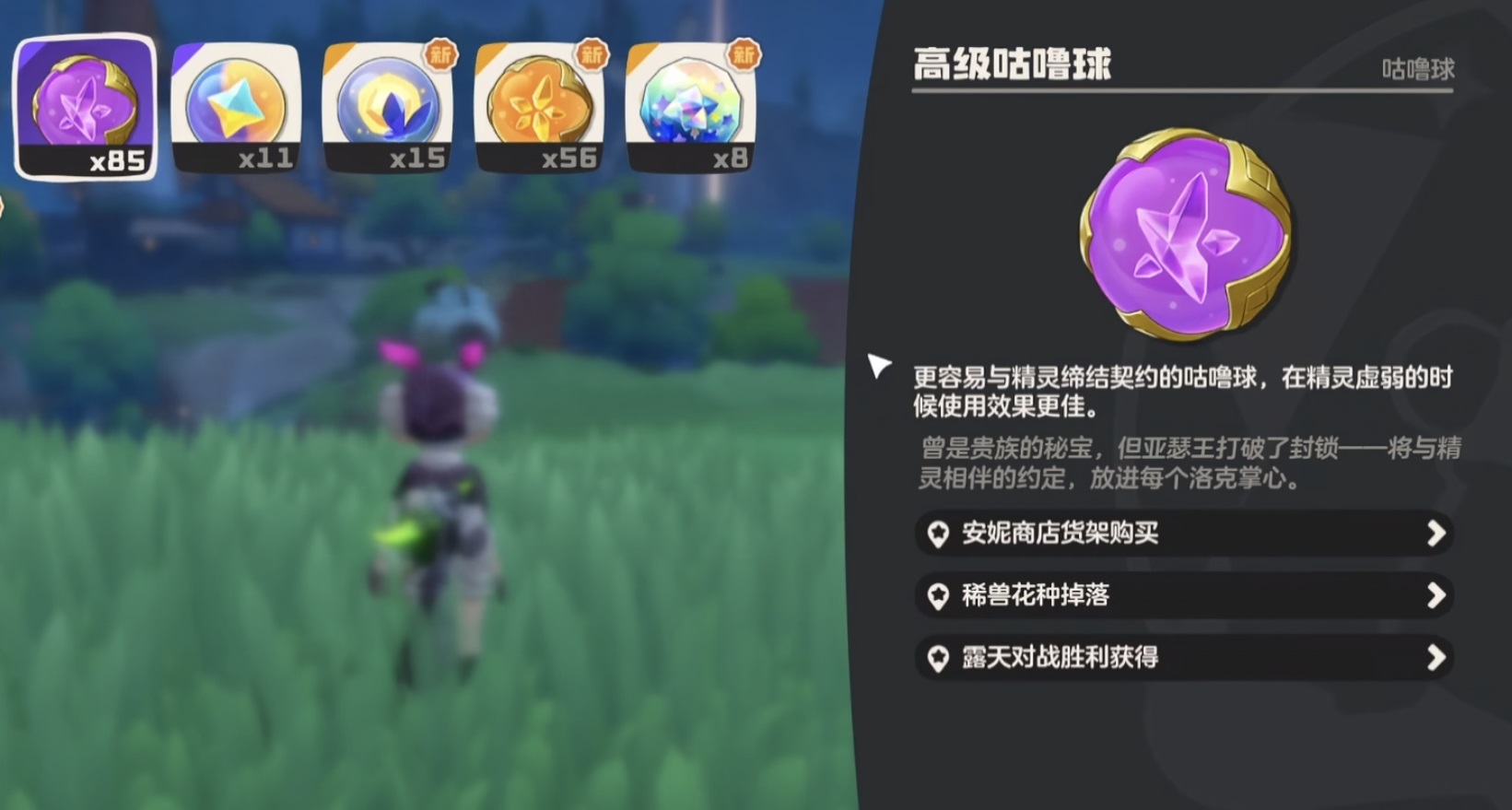 棱镜咕噜球适用于特殊场景捕捉,合成需消耗分光水晶与普通咕噜球。分光水晶可通过开启大世界宝箱、完成主线章节、激活月卡权益或解锁图鉴进度获得;同时,赛季通行证、大型版本活动及付费礼包中也包含该道具。整体资源规划建议:前期集中利用炼金台量产普通咕噜球,兼顾日常使用与后续合成储备;中期以安妮商店采购高级咕噜球为主力配置;后期聚焦国王咕噜球合成与储备,形成“普通→高级→国王”的三级捕捉响应机制。
