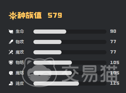 彩蝶鲨具备专属特性——可显著提升水系技能的基础伤害倍率,使其成为水系阵容中的核心输出担当。属性克制关系明确:对火系、机械系、土系目标具有1.5倍伤害加成;同时被草系、龙系技能克制。种族值分布均衡,其中魔法攻击与双防(防御/魔抗)尤为突出,配合特性加成后,整体爆发力与持续作战能力兼备,适配多种主流战术体系。