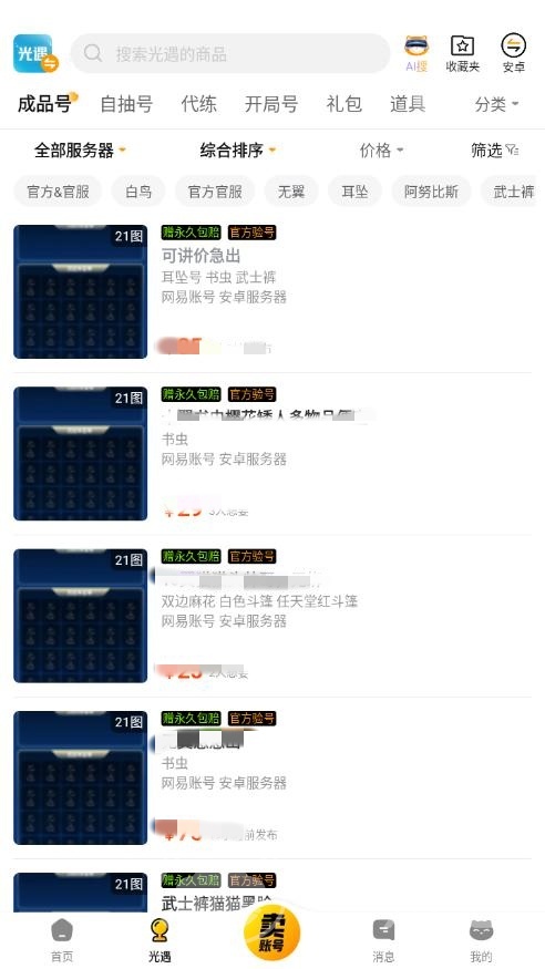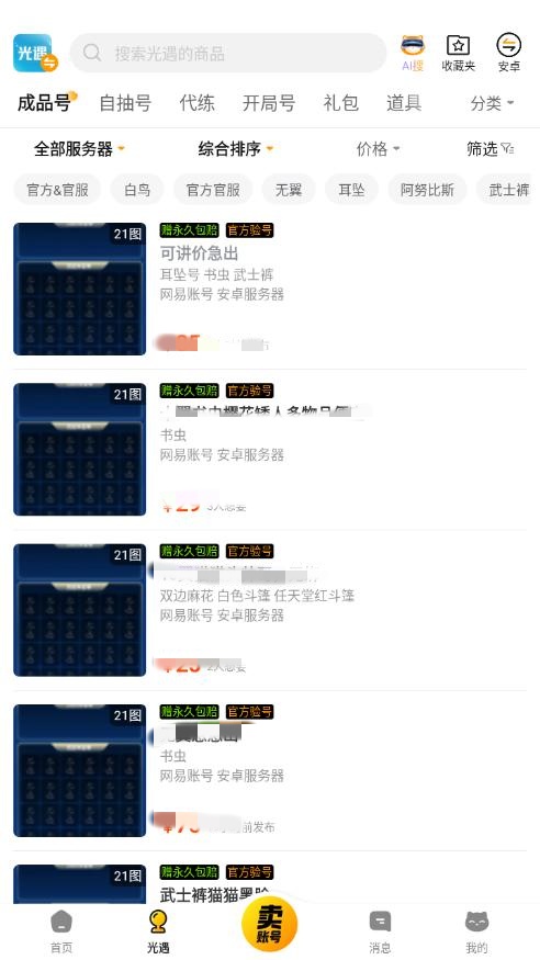 交易猫它背后是阿里巴巴灵犀互娱这样的大厂,给用户带来更加安心的保障,出问题有地方找。平台还主打一个全场永久包赔也就是说,哪怕交易完成很久之后账号出了问题,平台依然会负责到底。这不仅是卖给用户一个号,更是一份长久的安心。而且在这里找《光遇》的账号特别方便。从热门复刻、毕业套装到绝版礼包,各种稀缺资源都找得到现号。因为它本身就是一个超大型的游戏交易平台,覆盖的游戏有6000多款,光在架商品就超过100万件,选择特别丰富。这么多年来,它已经服务了超过7000万玩家,经验和信誉都是实打实的。