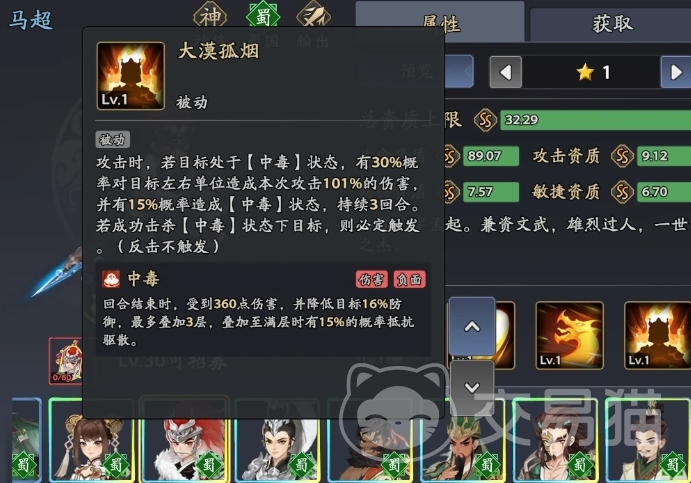 马超可作为灵活输出位替代选项,其被动技能对已中毒目标触发暴击时,伤害增幅显著;夏侯渊则补充功能性支持,除提供治疗外,还能清除敌方增益状态,并在队友暴击命中时施加伤残效果,进一步压缩敌方续航空间。整套阵容以“毒为核心、控为纽带、辅为支撑”,各角色间存在明确的状态响应逻辑与技能衔接节奏。