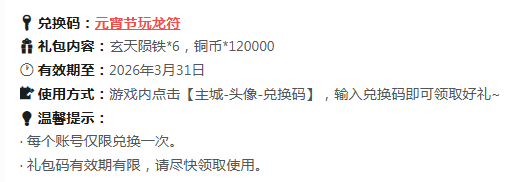 当前官方尚未开放10万钻石兑换码的领取通道。现阶段可使用的有效兑换码为【元宵节玩龙符】,可获得12000铜币。关于钻石类兑换码的后续发放安排,建议持续关注游戏官方公告渠道获取第一手信息。钻石作为游戏中不可替代的核心货币,直接关联魔化武将招募、稀有道具购置等关键成长环节,帮助玩家跳过传统卡牌游戏常见的“开荒阵痛期”,快速建立战力优势。