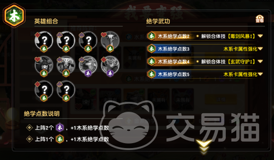 ②木系绝学(含木系绝学·残):共10名英雄,满羁绊需累计5点绝学值(1名完整木系=1点,2名木系·残=1点)