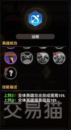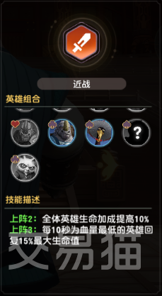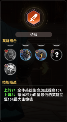 4点:合体技【血战到底】——合体阵容中战力最强的英雄在生命值低于50%时触发一次无敌状态,每位英雄独立计算触发次数
