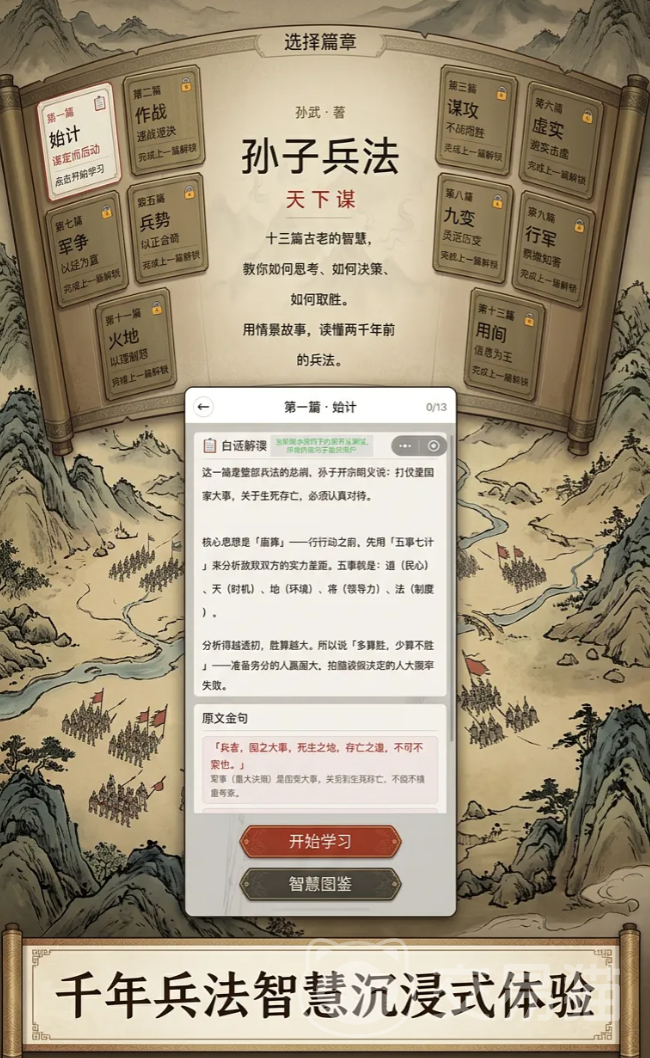 当千年兵学圣典跃入数字世界,一场融合策略深度与历史厚重感的交互体验正悄然酝酿。《孙子兵法》手游尚未公布确切上线日期,但其以沉浸式情景决策为核心的设计理念,已引发广泛关注。玩家可提前参与预约,静候春秋战国恢弘图景徐徐展开。