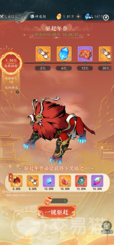 宠物进阶与技能升级所需资源,主要通过两大活动获取:其一是“百宠乱斗”,玩家可派遣宠物参与跨服匹配对战,获胜后除提升段位排名外,还将获得大量进阶丹、灵魄石等关键材料;其二是限时玩法“驱赶年兽”,该活动节奏平缓、操作压力小,产出资源稳定,尤其适合新手玩家每日参与以持续积累培养物资。