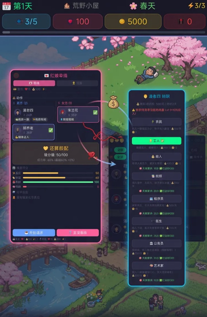 游戏内置40种动态热点事件系统,覆盖社会趋势、季节变化、突发事件等多元主题,每类事件均结合当下现实语境进行创意改编;同时引入32种村民性格标签体系,不同组合将触发差异化交互反馈,使每次经营过程都具备高度不确定性与重玩价值。玩家的每一个选择,都将切实影响事件演进逻辑与村落最终形态。