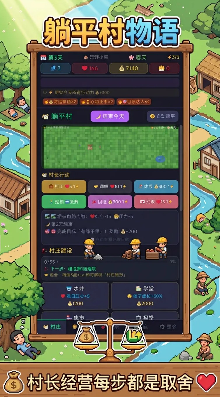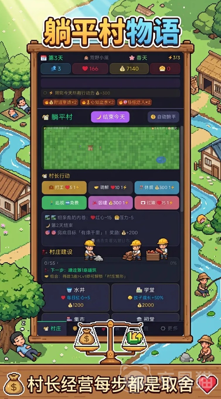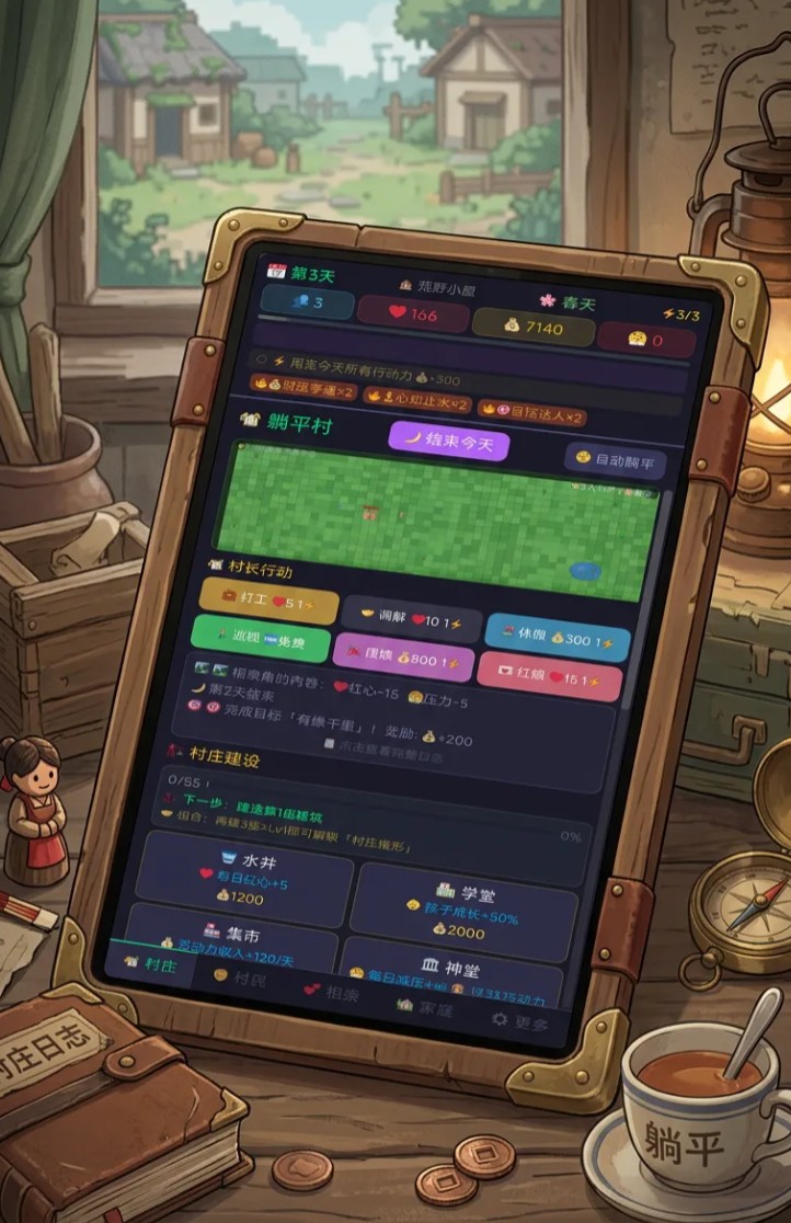 综上所述,《躺平村物语》并非单纯强调“躺平”概念,而是通过机制设计赋予玩家真正的掌控权与节奏定义权。若你期待一段不被进度条追赶、不受成就系统绑架的沉浸式乡村治理体验,那么这款融合策略性、随机性与人文温度的手游,值得列入近期体验清单。