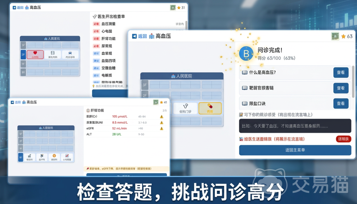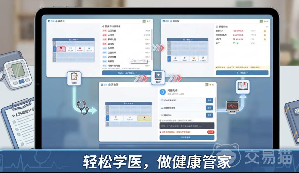 所有疾病词条均标注权威来源,每项检测结果均附带通俗化解读说明,涵盖参考范围、异常意义及可能诱因。游戏摒弃单纯分数导向,强调过程性成长:通关即获得阶段能力认证,积累的医学认知可直接迁移至日常健康管理,例如为家人解读体检报告、识别预警信号、制定初步干预建议等,切实提升全民健康决策力。