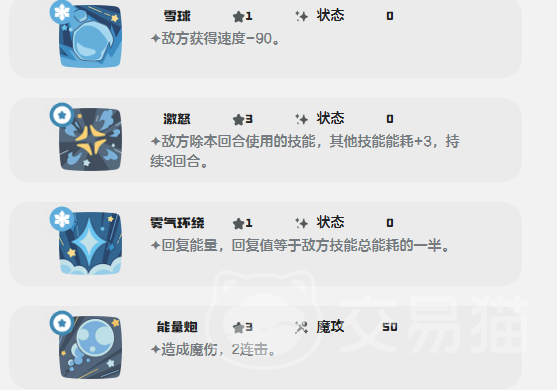 技能组设计强调能耗博弈与持续控场。“冰冻光线”附带魔法伤害的同时,额外施加能耗增量;“聒噪”进一步加快敌方攻击类技能的消耗速率,逐步瓦解其行动连续性;而核心大招“冰封横扫”的威力直接挂钩敌方当前总技能能耗,等效于其总能耗数值的10倍。这意味着在敌方频繁使用技能导致能耗累积至高位时,该技能可瞬间打出高额反制伤害。它不依赖瞬发秒杀,却能通过层层能耗压制打乱对手整套战术节奏,是团队中不可或缺的节奏枢纽型辅助。