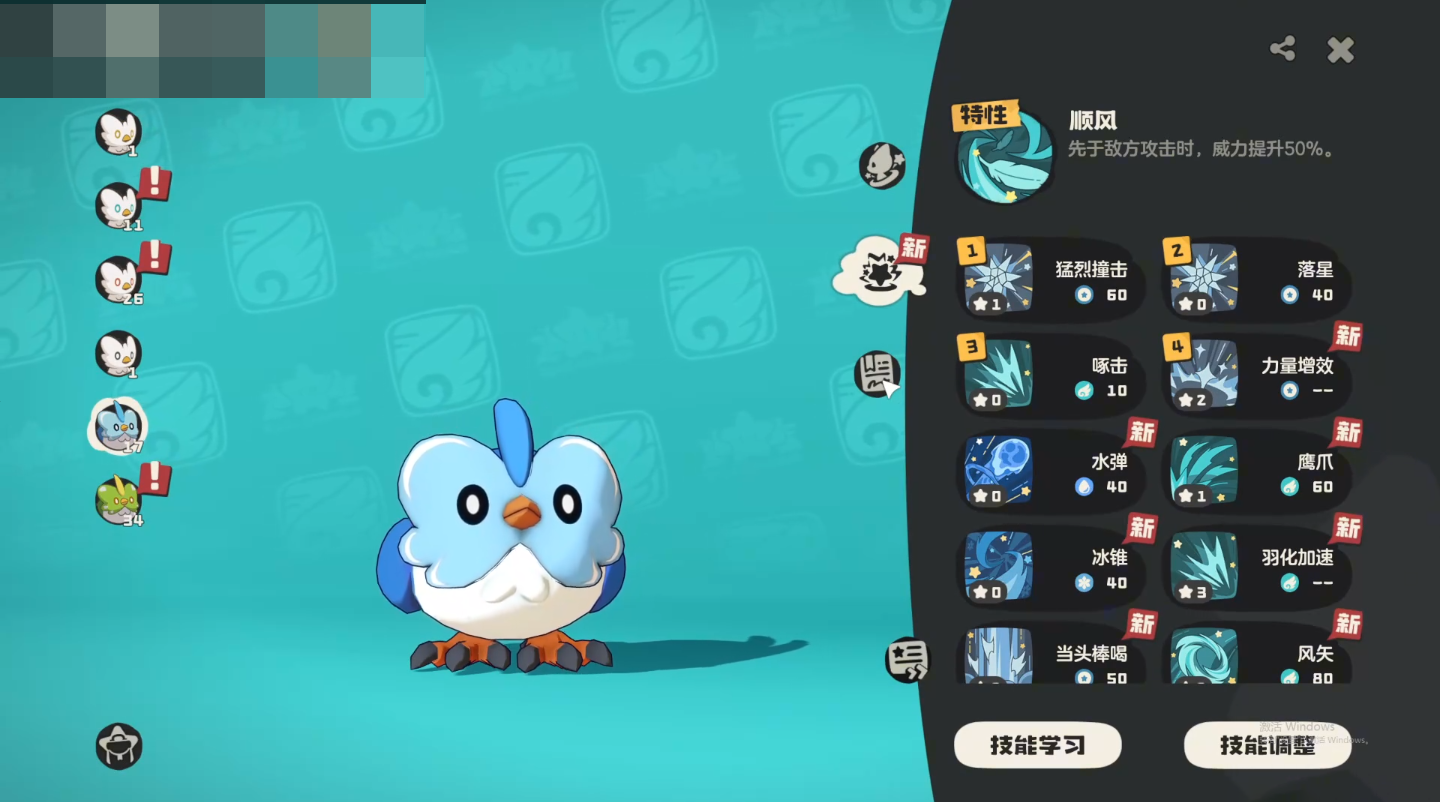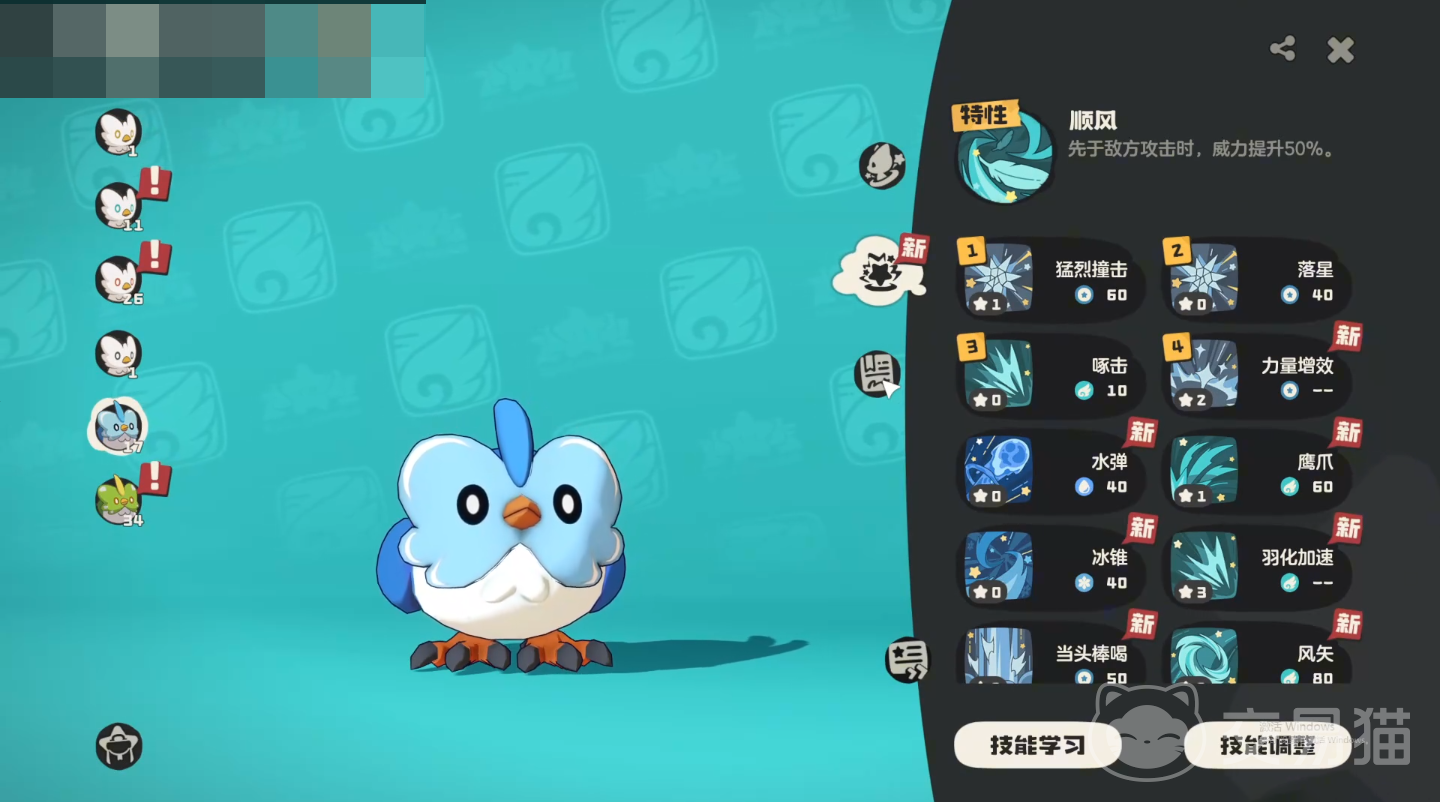 冬羽雀的核心机制围绕【顺风】展开——该技能可使其先手行动,并使自身物攻提升50%,是支撑其“极速物理强攻”定位的关键。在属性克制方面,它对草系与虫系目标具备显著压制能力,适合用于突破特定关卡与PVE环境。