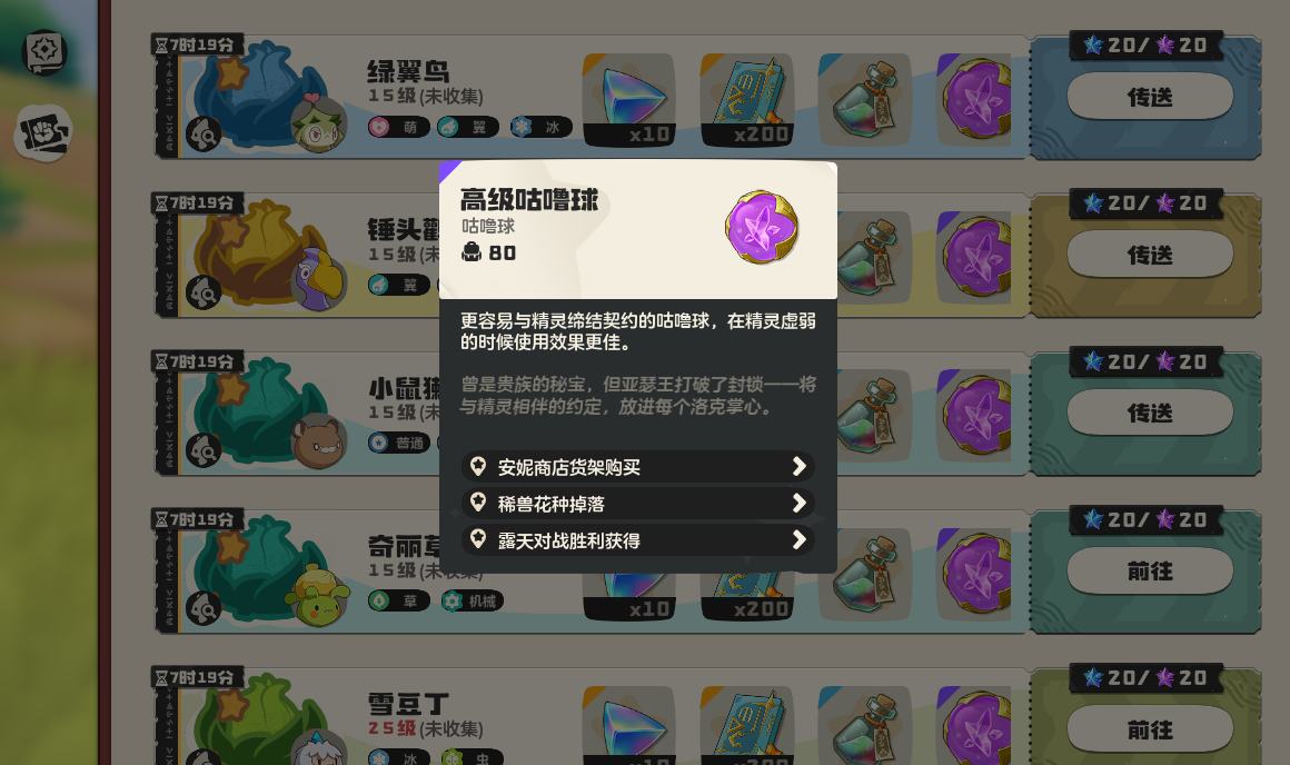 成功击败稀兽花种后,可稳定获得高价值养成资源,包括但不限于高级咕噜球、成长经验药剂及分光水晶等核心道具。需注意的是,各稀兽花种存在明显等级差,建议优先选择与己方主力精灵等级差控制在±10以内的目标进行挑战,以提升通关效率并保障资源获取率。