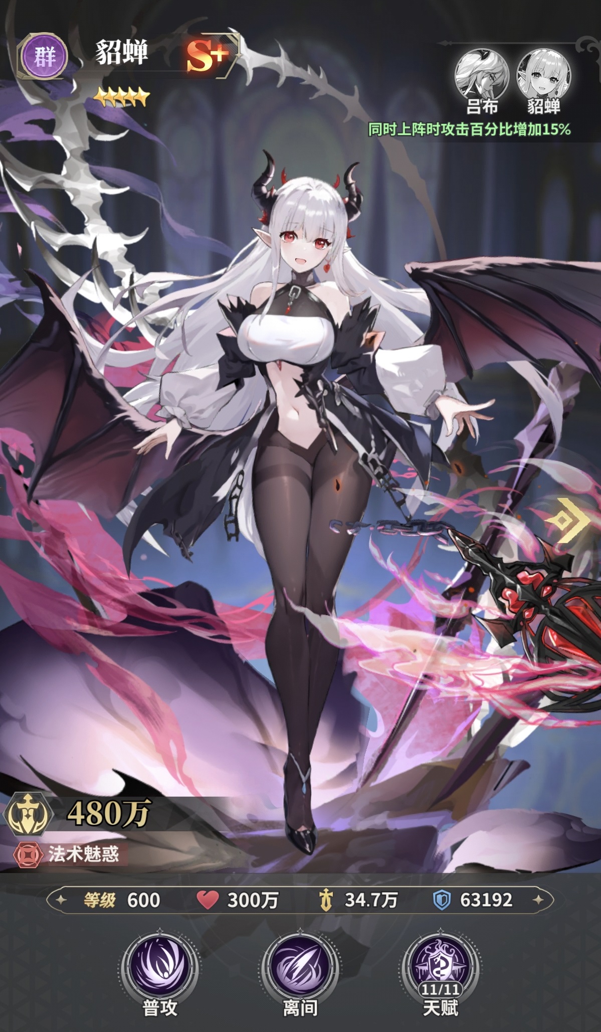 核心机制方面:吕布作为核心爆发点,在9星、11星、14星三个关键星级节点均会获得质变级天赋强化,满怒状态下单回合可精准清除敌方1至2名目标;貂蝉在16星解锁联动技能后,可大幅强化吕布的出手频率与伤害转化率,同时对敌方施加攻击力降低、怒气削减及行动封禁三重压制;贾诩则承担双重职能——一方面为全体群雄单位提供属性增益,另一方面释放沉默效果,与貂蝉形成稳定双控闭环,有效打断敌方关键技能节奏。