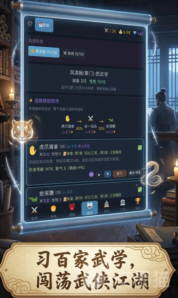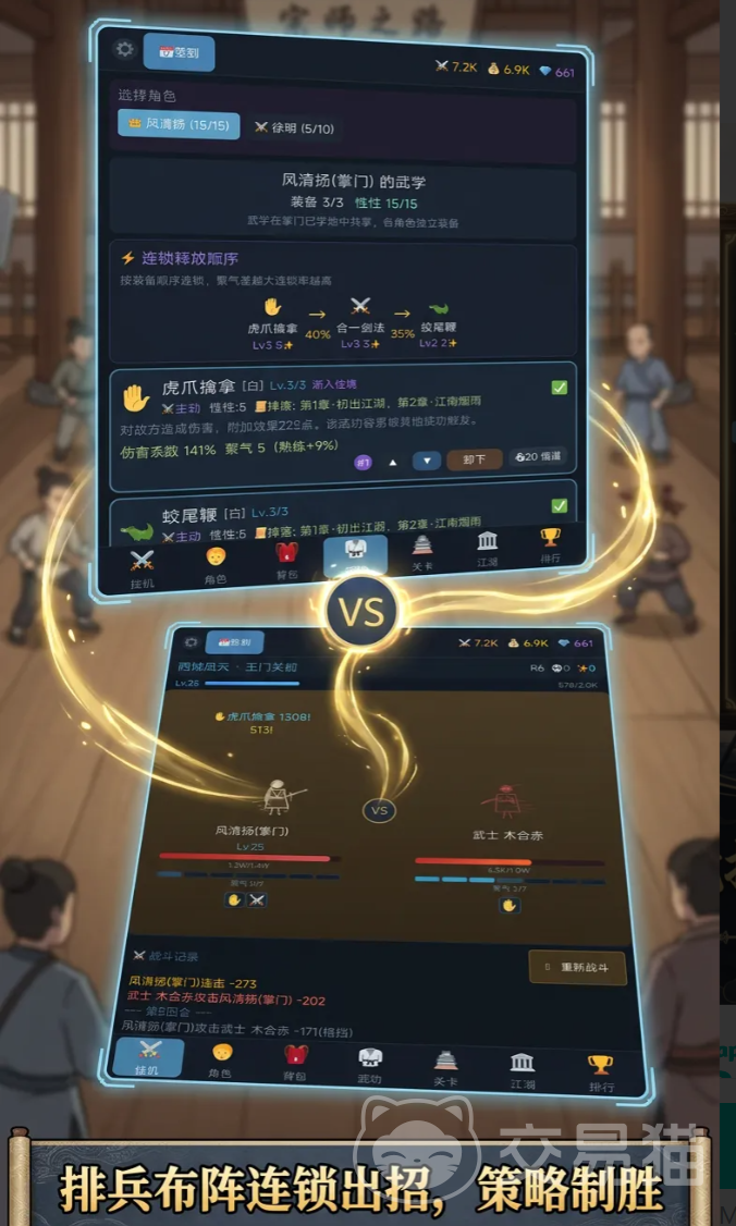 《宗师之路》构建了一个考究而自洽的古典武侠世界。其核心特色在于独创的“武学流派克制体系”:战斗并非数值碾压,而是实时策略博弈。当对手施展某一流派招式时,玩家需迅速判断并切换对应克制技能——例如少林刚猛功法可压制阴柔类暗器技巧,而太极化劲则擅长反制爆发型突进招式。胜负关键,取决于玩家对各门派武学特性的理解深度与临场应变能力。