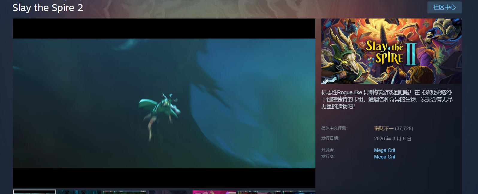 《杀戮尖塔2》正式定档2026年3月6日,届时玩家可在Steam平台购买并下载体验。作为广受好评的卡牌构筑类Roguelike续作,本作在继承前代核心玩法的基础上,全面拓展策略深度与内容维度。玩家将扮演多个全新职业角色,深入程序化生成的高难度尖塔,逐层挑战动态刷新的敌人、探索随机分布的宝箱,并解锁隐藏区域与特殊地形机制。