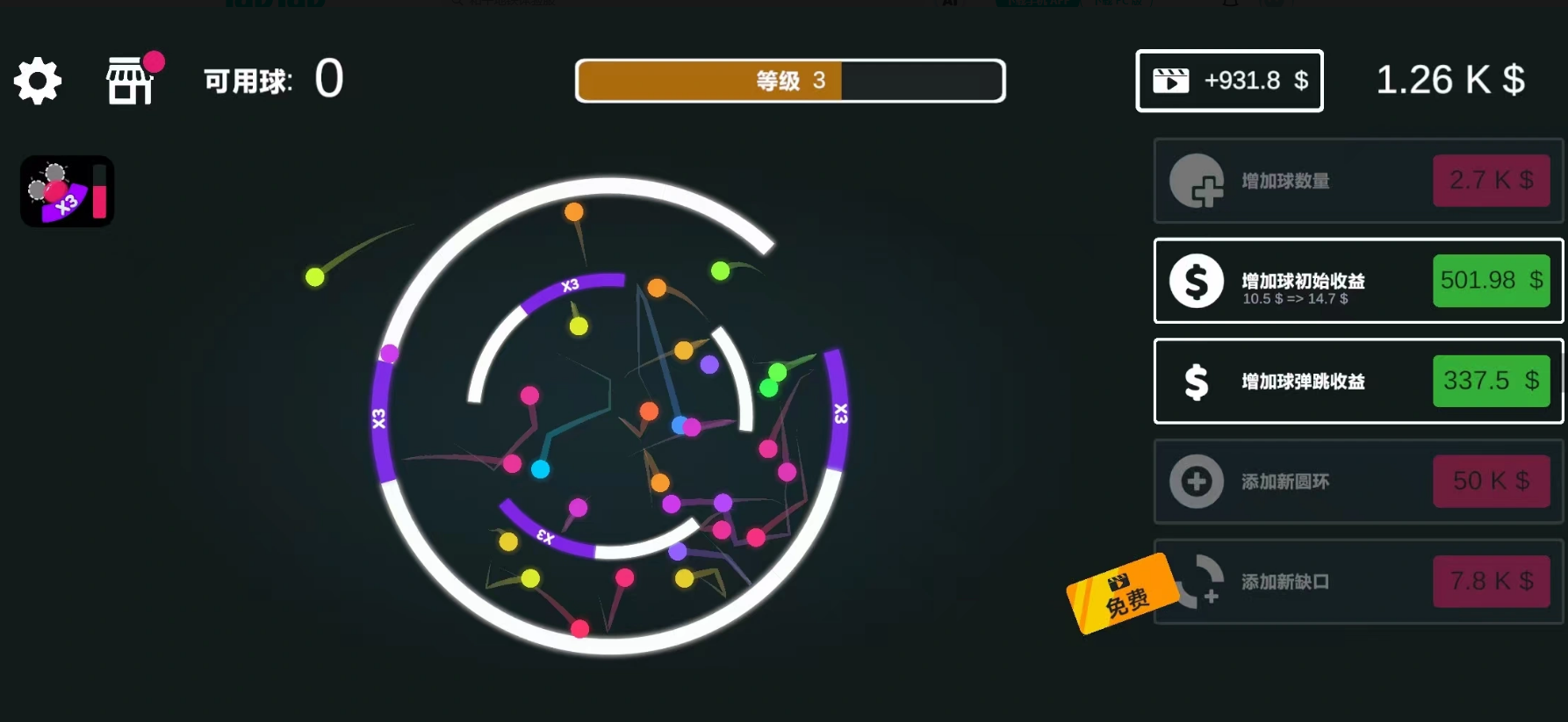 游戏中,不同属性的砖块构成策略性消除体系:红色砖块需承受两次有效撞击方可清除;金色砖块被击中后将掉落多倍金币奖励;炸弹砖则可触发范围爆炸,一次性清空邻近区域。配合普通钢球、附带火焰特效的燃烧球、具备分裂能力的弹球等多种球体类型,每一次弹射路径都蕴含多重变量与即时反馈。