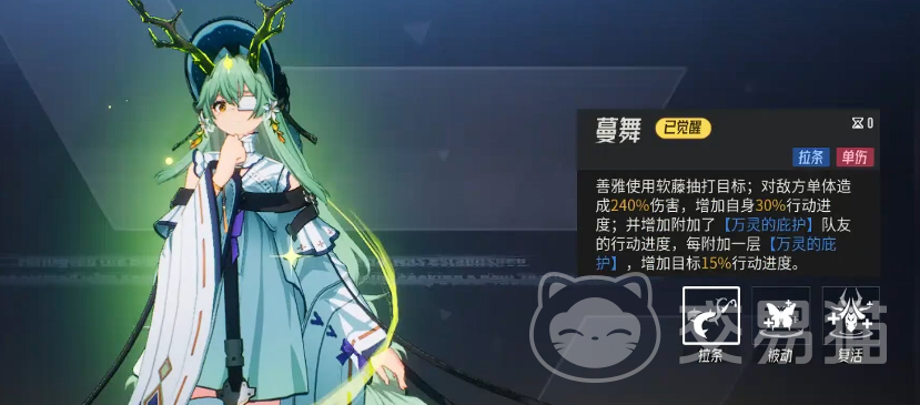 善雅的一技能“蔓舞”以普攻形式释放,本质是具备输出功能的节奏型技能。该技能对单体目标造成相当于自身攻击力180%的伤害,并立即提升自身行动条15%。随着技能等级提升,效果呈现阶梯式强化:升至2级时,伤害提升至200%;3级时,行动条加成增至20%;4级时,伤害进一步跃升至240%;满级(5级)后,行动条增幅达到25%,成为全队抢节奏、规避控制的关键保障。因此,若需最大化善雅的出手频率与战场主动性,务必优先将其一技能升至满级。