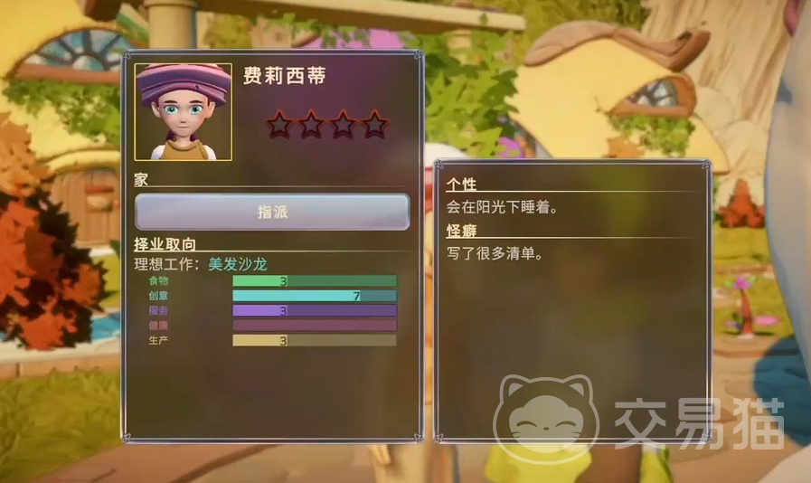 每位已入驻村民的详细属性均可通过信息面板实时查阅。其理想职业将明确标注于角色资料栏顶部,例如显示“发型师”则应指派至理发馆,“石匠”或“木匠”则需安排至对应施工岗位。人岗精准匹配是维持高产运转与长期稳定的核心逻辑。
