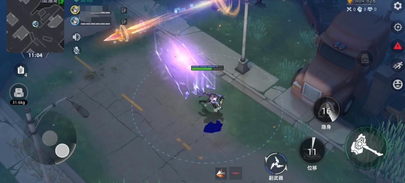二技能“幽影潜行”需2秒引导,随后进入持续15秒的隐身状态。隐身期间若发生攻击行为或与敌人距离过近将自动显形。此技能不仅适用于隐蔽搜集物资、规避侦查,更可在团队协作中实现精准绕后,尤其在三排模式下,能高效切入敌方后排输出位,形成战术破局点。