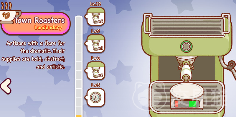 经济系统同样围绕“自主节奏”构建:所有设备升级、咖啡品类拓展及店铺装饰均依赖经营所得金币解锁,无强制内购设计;支持完全离线运行,无需网络即可随时进入咖啡馆;全程无干扰性广告弹窗,保障沉浸式体验。从基础意式咖啡机起步,逐步解锁虹吸壶、冷萃塔、氮气咖啡系统等专业设备,涵盖超20种以上咖啡类型,满足不同阶段的探索欲与创造欲。