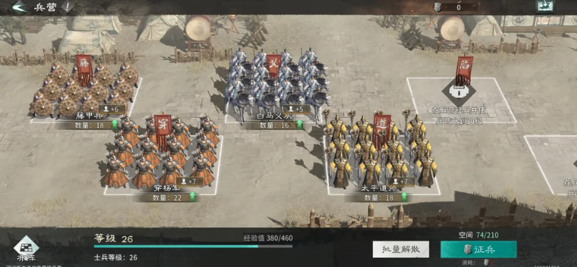 士兵分解须摒弃“唯星级论”,严格依据特技实用性筛选。银币紧缺环境下,推荐集中资源培养单一主力兵种:步兵首选藤甲兵(高生存+反伤),弓兵专注连弩兵(群体压制+减防),骑兵升至铁骑即可满足前排突袭需求,术士流派则适配五道米(范围控制+状态干扰)。不同兵种上阵后触发的协同效果存在显著差异,需结合阵容定位动态调整。