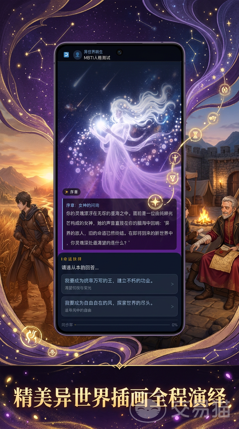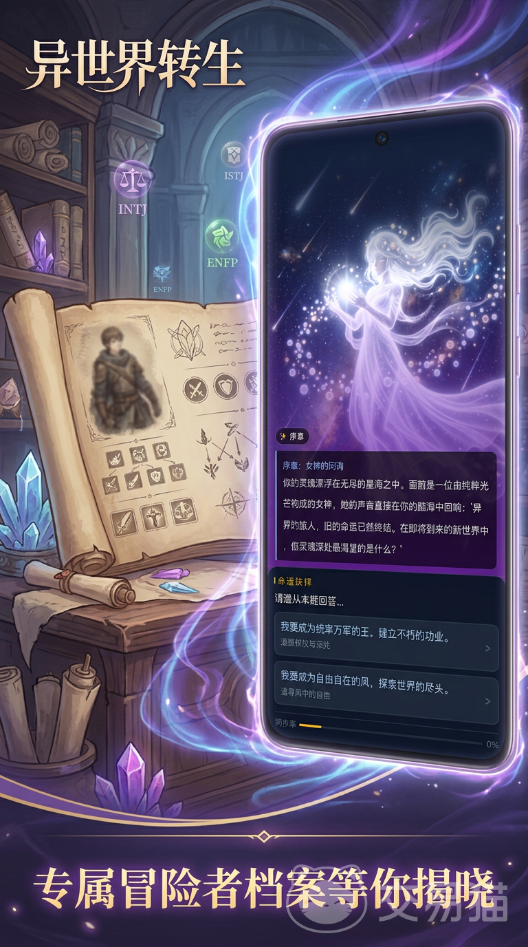 《异世界转生:MBTI人格测试》是一款融合心理测评与沉浸式叙事的创新型轻量级互动游戏。它并非传统意义上的角色扮演或卡牌对战产品,而是以MBTI十六型人格理论为内核,构建出高度个性化的异世界人生模拟体验。玩家将在十道精心设计的双选项心理题中完成自我映射,每一道选择都将导向截然不同的转生路径——从魔法学院的见习炼金师,到边境要塞的战术指挥官,再到浮空城邦的星象占卜师,身份解锁完全由真实偏好驱动。