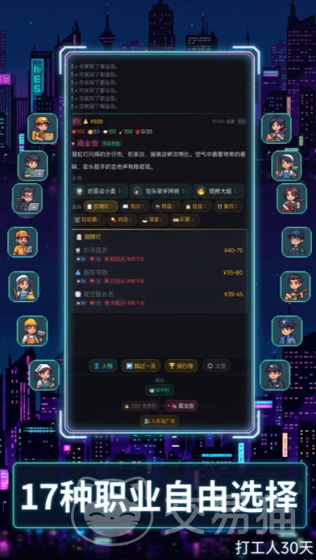 人生模拟类游戏近年来持续升温,凭借高度自由的叙事结构与沉浸式成长系统,吸引大量玩家投身其中。在诸多同类产品中,《打工人30天》以写实基调与强代入感脱颖而出——它不追求浮夸逆袭,而是聚焦普通人初入都市的真实生存图景:有限预算、基础学历、随机变数与每日抉择共同构成游戏的核心张力。