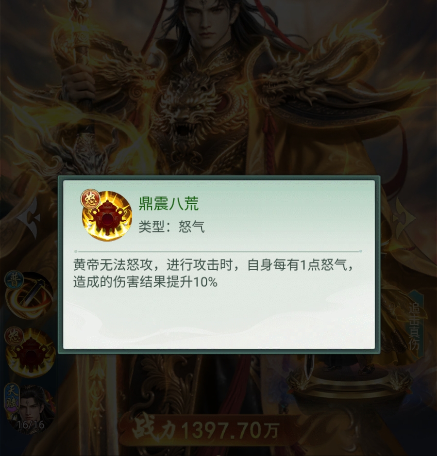 综上,黄帝是以怒气叠加为核心驱动的持续型输出角色,依赖普攻与追击双路径输出,兼具单体压制力与群体终结能力。其机制简洁但深度充足,资源投入回报率高,属于中后期主力培养的核心战力。以上内容已完整覆盖黄帝的机制要点与实战应用逻辑,可供玩家参考制定养成与配队策略。