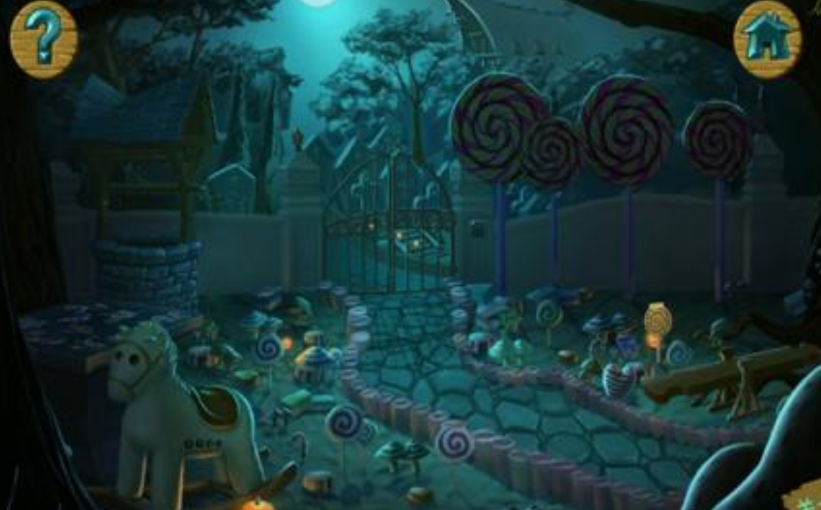 第二关转移至糖果主题建筑,整体交互密度显著提升。玩家需先拾取棒棒糖造型道具,通过拼图组合获得小刀;室内东、南、西、北四方位的棒棒糖位置构成方向提示序列,用于激活隐藏机关。完成木柄插入并按正确顺序输入方向指令后,可获得绿色眼睛部件;再用小刀割断绳索,释放被缚物品。该环节对操作精度与多线程信息记忆提出更高要求,每一步骤均需严格遵循视觉反馈与逻辑闭环。