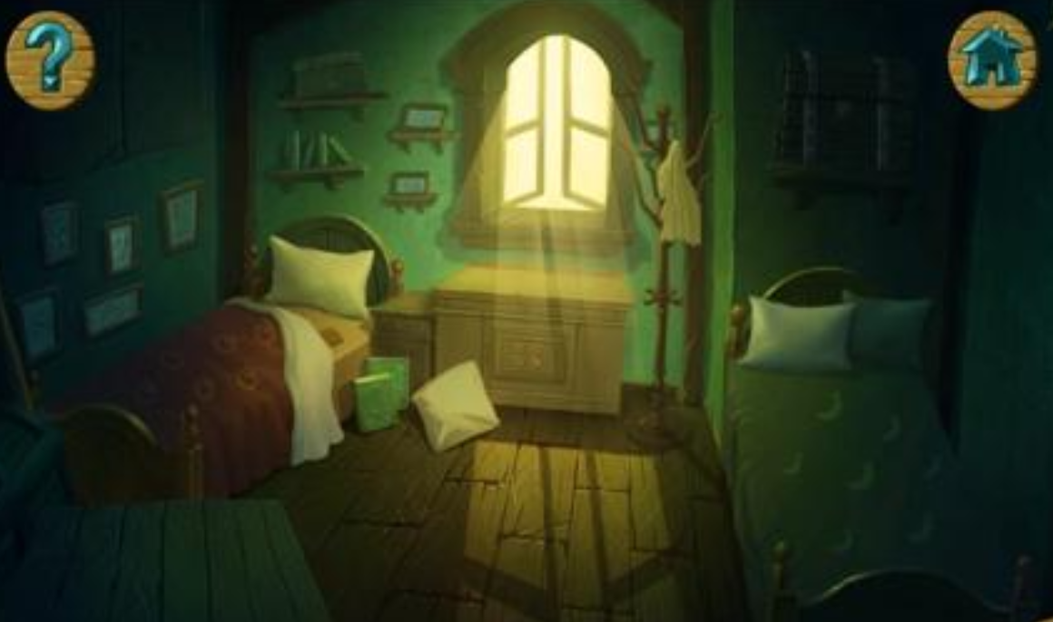 第一关设定于布满机关的初始石室。玩家需优先识别桌面捕鼠器与纸条的潜在功能,并留意墙面四组网格状虫类移动轨迹——该动态图案隐含颜色方块排列逻辑,是解锁抽屉的关键依据。随后将梯子置于桶侧取水扑灭火焰,获取第二张纸条;结合前期收集的数字线索,最终推导出四位密码“6483”,开启左侧房门。进入厨房后,胡萝卜、床板木纹走向、窗框刻印数字等细节共同构成后续解谜链,需系统串联方可完成本关。