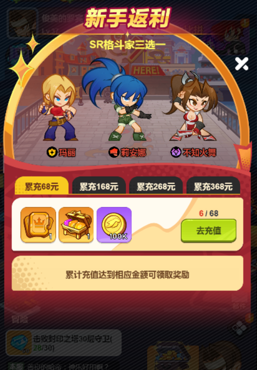 角色获取路径清晰高效:八神庵通过新手十连抽100%保底获取;草薙京可通过碎片商店兑换或公会活跃任务稳定积累;大门五郎则为登录第7日签到奖励,全程无门槛。所有角色均支持低资源消耗养成,升星与技能升级所需材料在日常副本与活动周期内均可足量产出。