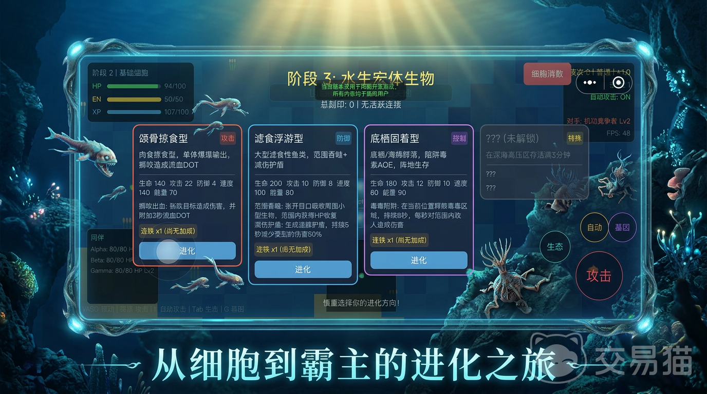 本作摒弃线性脚本设计,构建了一个无预设结局的动态微观生态系统。玩家操控初始原核细胞,在含氧量波动、温度梯度变化、掠食者密度起伏的真实物理规则下持续适应。每一次能量分配、每一轮基因表达选择、每一处鞭毛结构优化,都将直接影响种群繁衍效率与环境适配度,带来强沉浸感的原始海洋生存体验。