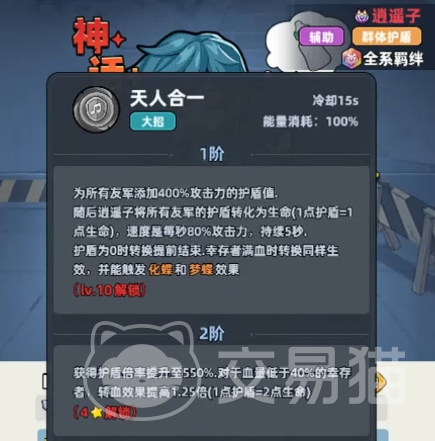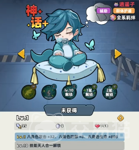 庄周定位为神化品质群体治疗型辅助,核心价值体现在三重维度:一是大范围持续疗愈能力,二是前排承伤适配性,三是团队能量循环支持。实战部署建议将其置于前排——其基础坦度足以吸收可观伤害,同时每轮行动可为全体友方恢复能量,该“回能”机制在当前版本中属于稀缺资源,尤其利于高耗能技能阵容的续航构建。需注意的是,该角色存在明显养成门槛:必须达到10星后,关键被动与大招效果才完全解锁,前期战力表现相对平缓,不推荐零氪或资源紧张阶段强行投入。