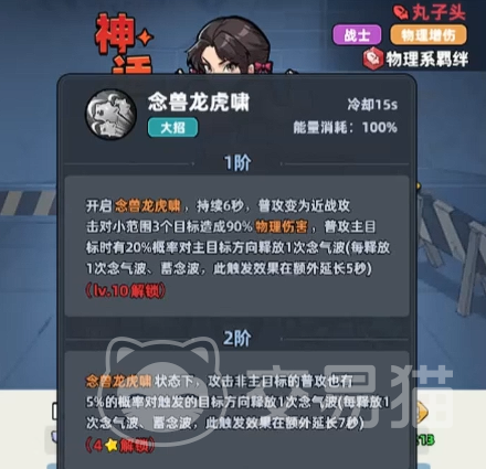 大招“猎兽龙虎啸”开启后,持续6秒内普攻转为强化范围技,每秒对最多3名敌人造成90%攻击力伤害,总计理论伤害达540%。更关键的是,每次普攻有20%概率额外触发一次念气波,且每次触发均可延长该大招持续时间5秒。合理堆叠触发率,可将爆发窗口大幅延展,实现高效群清与BOSS压血线操作。