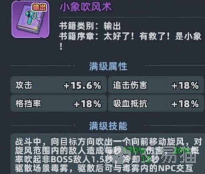 中后期(第15天起)若需高频、定向、机动性强的清雾手段,“小象吹风机”技能书是理想选择。该紫色品质技能可装备至任意角色,冷却时间为25秒,释放后清除前方5格×3格矩形区域毒雾,并附带短距离敌人击退效果,特别适用于高威胁资源点攻坚。获取途径包括常规抽卡、活动副本,且第15天开启的“技能书定向补给”活动将大幅提升其掉落概率。