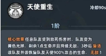 天使不承担前线输出职责,全部技能设计均聚焦于“防御稳固”与“生命延续”。初始技能即包含队友复活能力,后续可解锁大范围护盾覆盖,为全队构建基础生存屏障。其被动增益效果可显著提升团队整体容错率,无论面对高强度BOSS战还是倒计时类生存关卡,有天使协同的队伍往往能维持更长的持续作战时间。尤为关键的是“天使重生”机制:当队友受到致死伤害时,立即转化为黄色光球形态,保留微量生命值并进入无敌状态。
