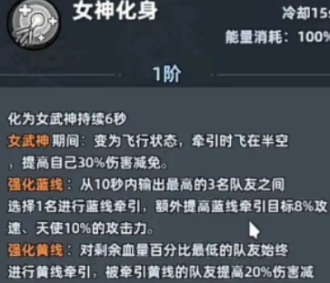终极技能“女神化身”需消耗100%能量,开启后天使进入6秒飞行状态,自身获得30%伤害减免;若已解锁强化效果,则可为目标队友提升8%攻击速度,并为自己增加10%攻击力;此时黄线牵引还可为被链接队友附加20%伤害减免,且天使每秒恢复80%攻击力等量的生命值。这种复合型增益显著拉升团队整体生存与输出稳定性。在资源分配方面,天使的养成路径区别于输出角色:无需堆叠暴击或攻速属性,应优先提升星级,同步推进等级成长,确保关键技能如天使重生、天使之杖、女神化身及时解锁并升级至高等级。