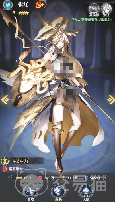 首位推荐的是张辽——前排群体压制型核心。其基础技能可对敌方全体造成70%攻击力的范围伤害;当敌方单位每减少1名,该技能伤害额外提升20%,形成越战越强的滚雪球效应。配合夏侯惇上阵时,触发“铁壁”羁绊,全队防御提升15%。此外,击杀敌方武姬后可获得2点怒气,确保大招释放节奏稳定。该角色在九星成型后,凭借高频率AOE与怒气续航能力,在多目标副本及PVP快攻体系中表现尤为突出。
