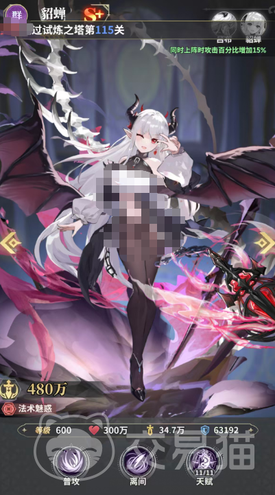 貂蝉定位为战术控制核心,与吕布共同登场时可激活专属羁绊,额外提升15%全队攻击力。其“离间”技能对敌方血量最低的两名单位造成120%法术伤害,并有30%概率施加“魅惑”状态——被魅惑目标将完全无法行动;若魅惑失败,则削减目标1点怒气并降低其10%攻击力,兼具干扰与资源压制双重价值。