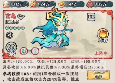 反伤流体系推荐玄武。该灵兽每两回合释放一次技能,为我方主角提供142%攻击加成并附加治疗效果。当叠满5层生存治疗后,可有效抵消敌方控制技能带来的压制风险,显著延长主角站场时间,是构建高容错反伤阵容不可或缺的承伤与续航支点。