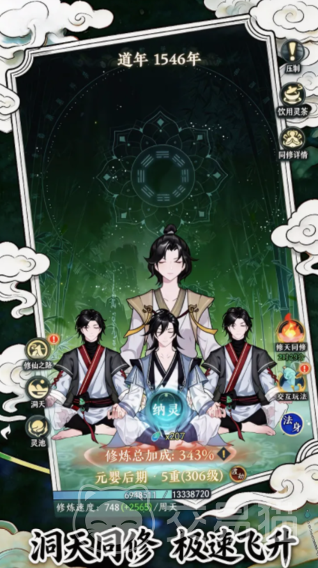 修行体系深度结合洞天福地机制,开启“洞天同修”后,修炼效率获得稳定增益,大幅缩短境界突破周期。此外,仙树培育作为独立成长线,通过周期性浇灌、施肥与护灵操作,持续积累专属灵力值,为后续突破提供额外助力。当修为达到元婴期后,玩家可正式开宗立派,创建专属宗门,承接宗门专属任务,并与其他宗门开展资源置换、联合试炼、跨服论道等协作玩法,加速飞升进程。所有非绑定装备均可通过游戏内兑换系统折算为通用货币,便于后期定向购置高阶法宝或稀缺资源。