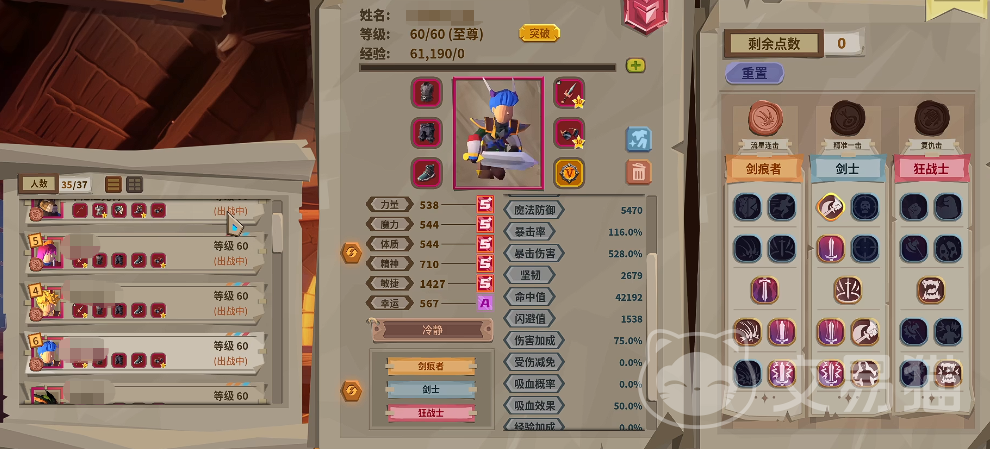 【兔子队】主打高效资源产出,尤其适用于酒馆红背景副本、工坊材料刷取及挂机装备获取。该阵容核心由兔子、乐克教徒与探宝者组成。其中兔子为绝对主力,单队最多可上阵6只;初始战力约1.1万,满配升级后稳定突破1.2万战力阈值。需特别注意:兔子必须完成前期加点方可登场,且技能选择须严格匹配掉宝增益方向。当兔子品质达到S级+幸运时,整体掉落率获得显著提升。