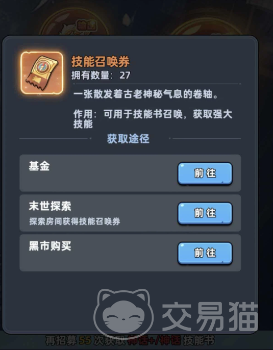 技能召唤券可通过多种方式积累:世界地图随机探索有一定概率拾取;黑市中可消耗钻石兑换,但鉴于钻石资源整体稀缺,该途径建议作为补充手段;此外,开通技能书基金后,每次角色进阶均可领取固定数量的召唤券,属长期稳定产出渠道,推荐中后期持续投入。
