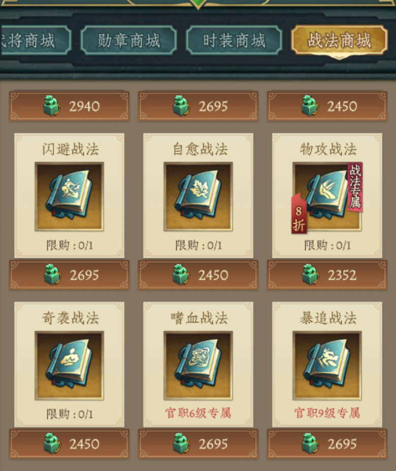战法技能方面,基础品质战法可通过副本、活动等免费途径稳定获取;而最高阶的橙色(五星)战法,除少量活动定向产出外,主要依赖召唤池抽取或使用元宝在特定商店直接购置,属进阶养成环节的关键投入项。