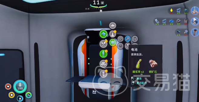 根据配方要求,制作建造枪需消耗三类基础组件:智能芯片、电池、接线盒。这三者均可通过浅水区资源采集与简易合成获得,无需进入高危深海环境。浅水地带地势开阔、光照充足、敌对生物稀少,是新手最安全高效的初期采集区域。其中,电池的合成材料为铜矿石与酸性蘑菇——铜矿石常见于逃生舱周边裸露岩层表面;酸性蘑菇则多生长于浅水区礁石边缘,采集后即可投入合成流程。