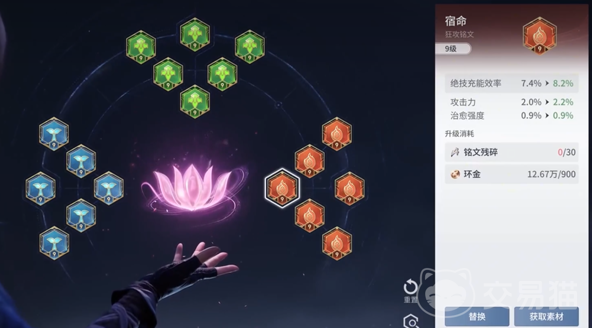 第四大模块为“铭文”系统。区别于原版《王者荣耀》中需为每位英雄单独配置铭文的设定,本作实现铭文跨共鸣复用机制。即同一套铭文配置可同步应用于多个已解锁的英雄共鸣,显著减少重复配置时间与资源消耗。铭文主要提供固定属性加成,如冷却缩减、穿透值、移速增益等,属于中后期战力补强的关键环节。